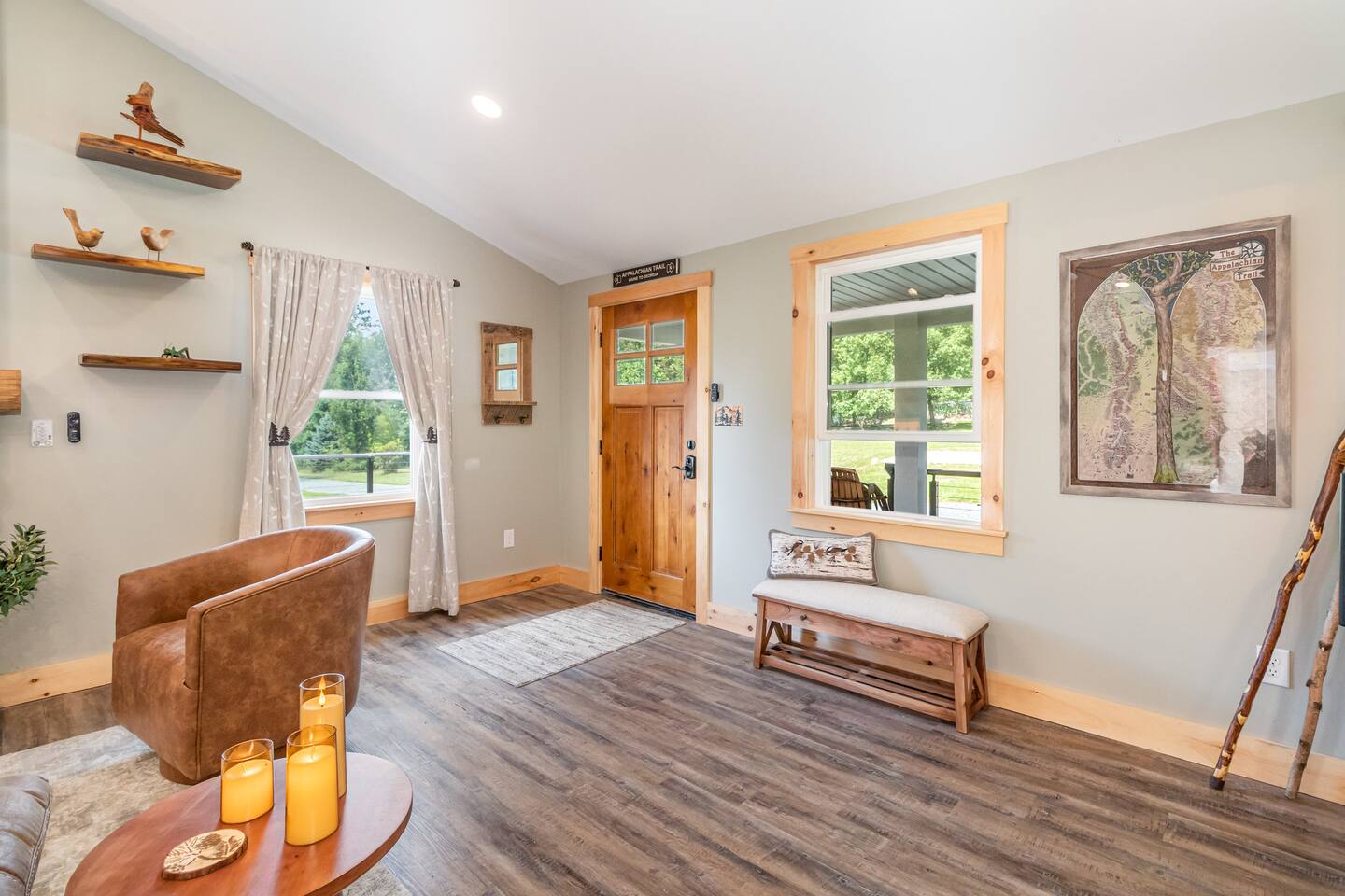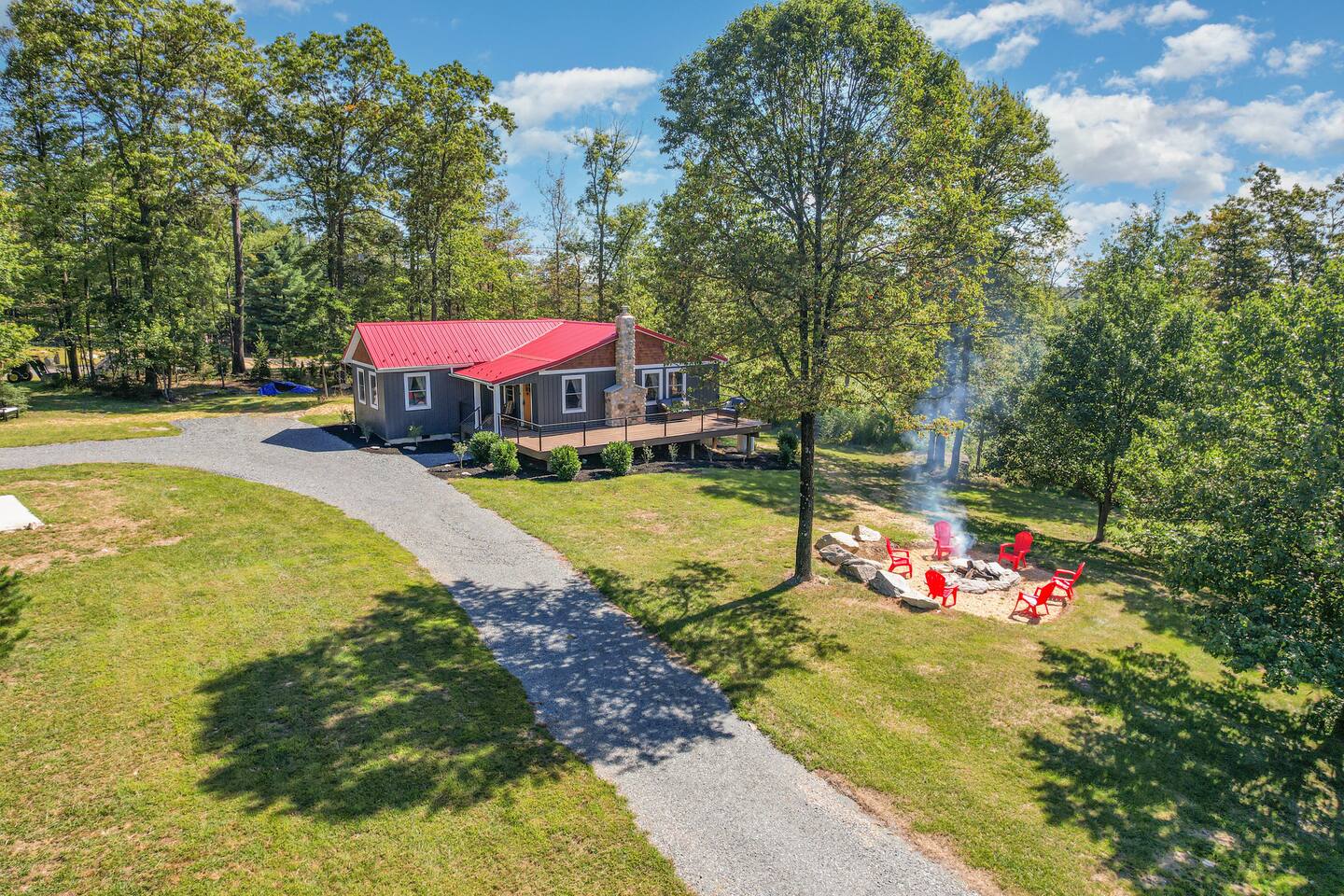 Whispering Pines Wellness Retreat is a ranch style cabin that sits on 3 private acres in the heart of Michaux State Forest. Guests have full access to the cabin and amenities.