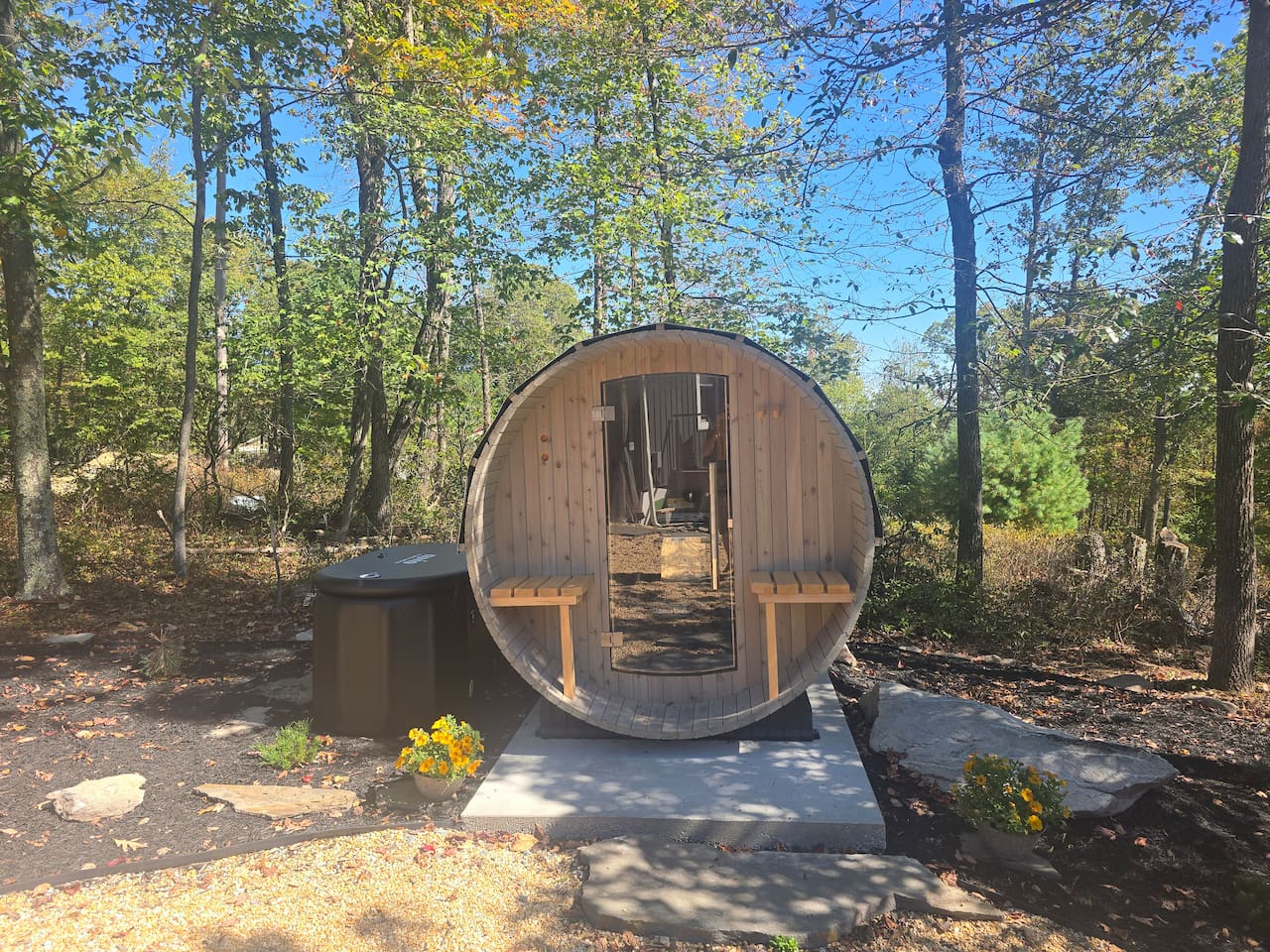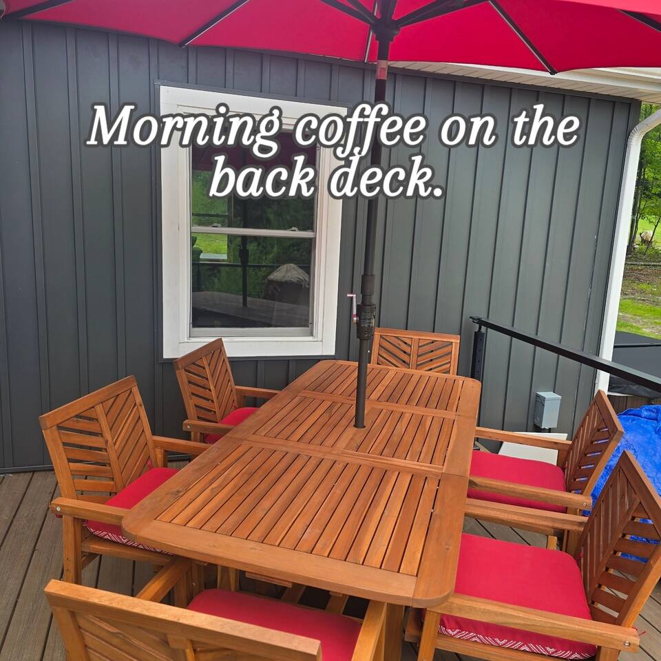 Whispering Pines Cabin | Wellness Retreat near Gettysburg (Sleeps 8) Welcome to Whispering Pines Cabin, a peaceful wellness retreat nestled in the Adams County countryside, just 25 minutes from historic Gettysburg, Pennsylvania. Designed for relaxation, connection, and restoration, this private nature cabin blends rustic charm with modern comfort—perfect for families, couples, or groups of up to 8 guests seeking a wellness-focused getaway. --- 🛏️ Comfortably Sleeps 8 Guests Bedroom 1: King bed Bedroom 2: Queen Bed Bedroom 3: Two twin beds Living Room: Queen sleeper sofa for extra guests Each bedroom is designed with cozy cabin décor, soft lighting, and peaceful forest views to ensure restful sleep. --- 💆 Wellness Amenities Rejuvenate your body and mind with your own private outdoor spa experience: 🌿 Hot Tub — Soak under the stars surrounded by whispering pines 🔥 Authentic Barrel Sauna — Detox and unwind in your personal wood-fired sauna ❄️ Cold Plunge Tub — Invigorating full-body refresh for post-sauna recovery ✨ Spacious Fire Pit Area — Gather with loved ones under the Pennsylvania night sky ☕ Peaceful Deck Seating — Ideal for morning meditation or forest coffee rituals Whispering Pines is more than a stay—it’s a wellness experience designed to help you recharge, breathe deeply, and reconnect with nature. --- 🏡 Inside the Cabin Fully equipped kitchen with everything you need for home-cooked meals Cozy living area with smart TV, Fast Wi-Fi, and fireplace ambiance Rustic wood interiors and warm cabin lighting for a peaceful atmosphere Modern comforts blended with natural surroundings --- 🚶 Explore & Restore Located near Gettysburg National Military Park, Appalachian Trail access points, Adams County orchards, and local wineries, Whispering Pines offers endless ways to connect with history and nature. After exploring, return to your private hot tub and sauna to relax beneath the starlit forest sky. --- 💫 Perfect For Romantic getaways and anniversaries Family wellness vacations Nature lovers and outdoor adventurers Retreats focused on rest, mindfulness, or cold-plunge recovery --- 🌿 Why Guests Love It Guests call Whispering Pines a “peaceful hidden gem” where luxury meets nature—a place to unplug, recharge, and reconnect just minutes from Gettysburg’s rich history and scenic trails.