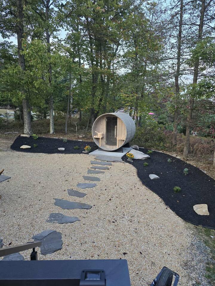 Escape to Whispering Pines, just 25 minutes from historic Gettysburg, your private wellness retreat in the heart of Adams County, just minutes from Gettysburg Battlefield, local wineries, and scenic hiking trails. This cozy, pet-friendly cabin combines rustic charm with modern comfort — a peaceful space designed for relaxation, romance, and reconnection. The space features a 7 person Hot Tub along with an authentic Barrel Sauna and Cold Plunge. Relax around the Firepit under the stars.